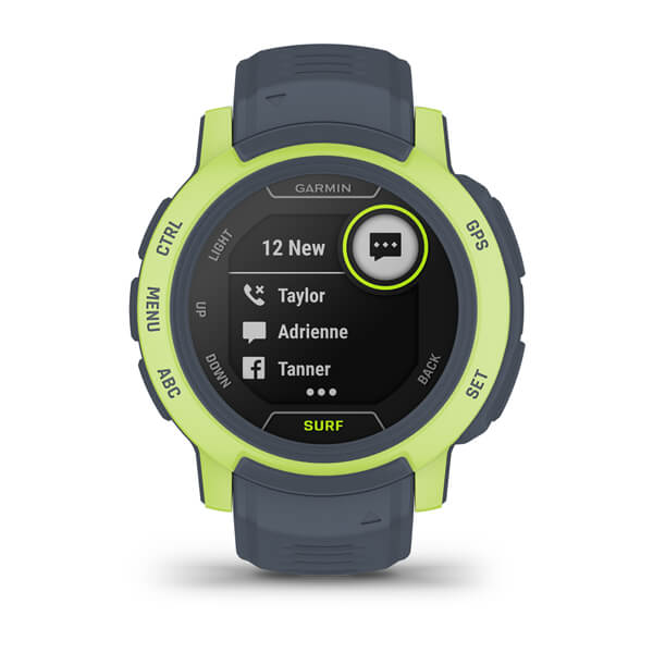 Consultă condiţiile, cum ar fi mareea, înălţimea valurilor, vântul şi evaluarea condiţiilor de surfing, pentru fiecare dintre cele mai apropiate cinci locuri de surfing, când este asociat cu aplicaţia Garmin Connect™ de pe smartphone-ul tău compatibil.
